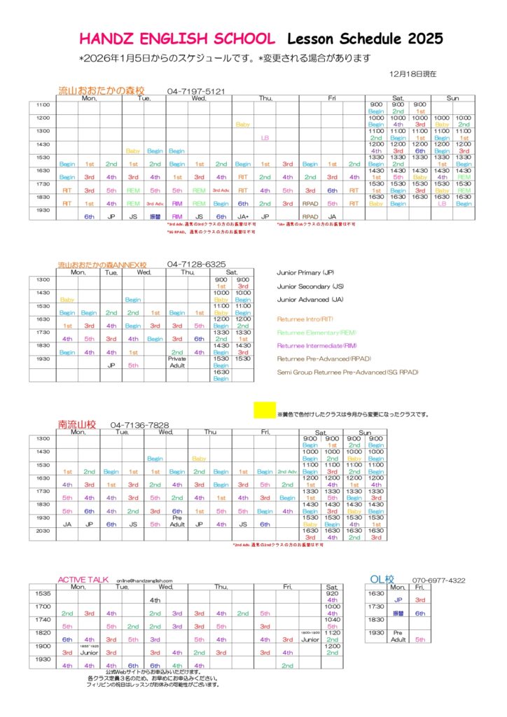 【全校】レッスンスケジュール(2026年1月)
