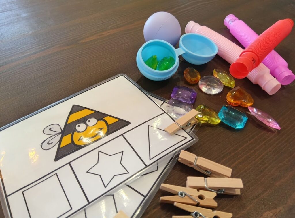 例えば、粘土遊び、折り紙、ビーズアクセサリー作り、シールをは
